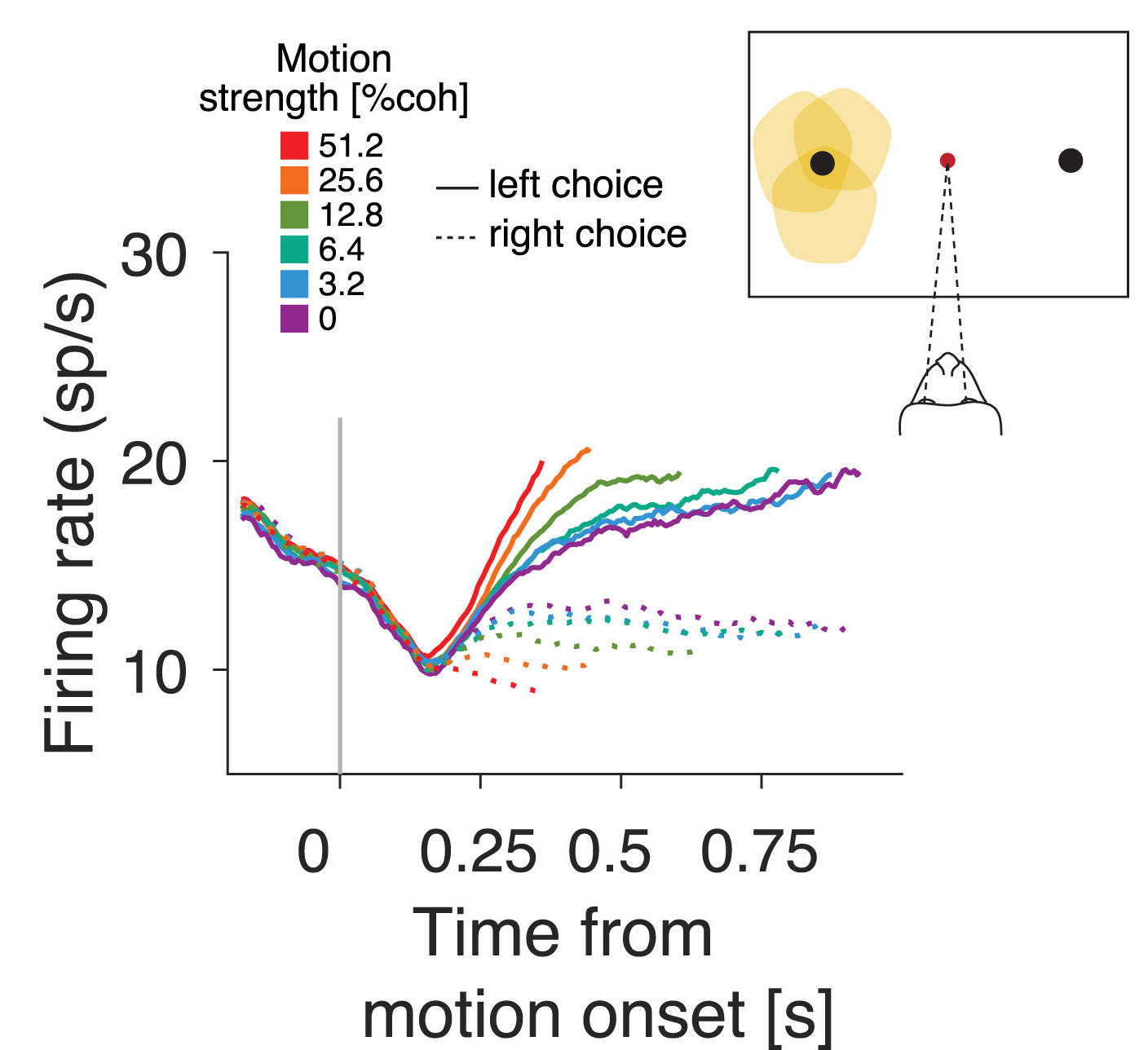 Neurons in LIP, dlPFC, or striatum ramp up/down over time.
